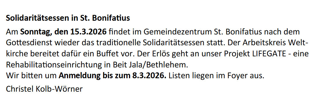 Aktuelle Termine zu Gottesdiensten und Veranstaltungen der Kath. Kirchengemeinde St. Bonifatius-Friedrichsdorf Und was gibt es noch Interessantes gibt, in unserer schönen Stadt Friedrichsdorf im Taunus (Beobachtet und erfasst von Manfred Gogrewe)